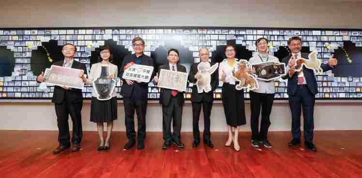 传奇国际携手创利空间为故宫建置的智慧文物互动导览墙及轮播墙,,今日正式启用。。(左四:传奇国际新事业暨投资管理总部副总经理杨本豫、、、、右四:故宫博物院院长吴密察、、、、右三:太极影音董事长黄宝云)
